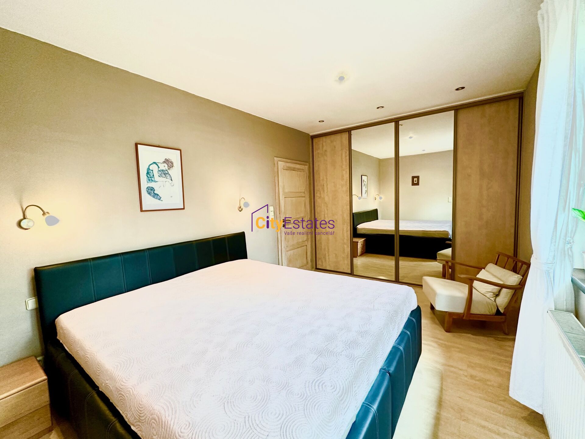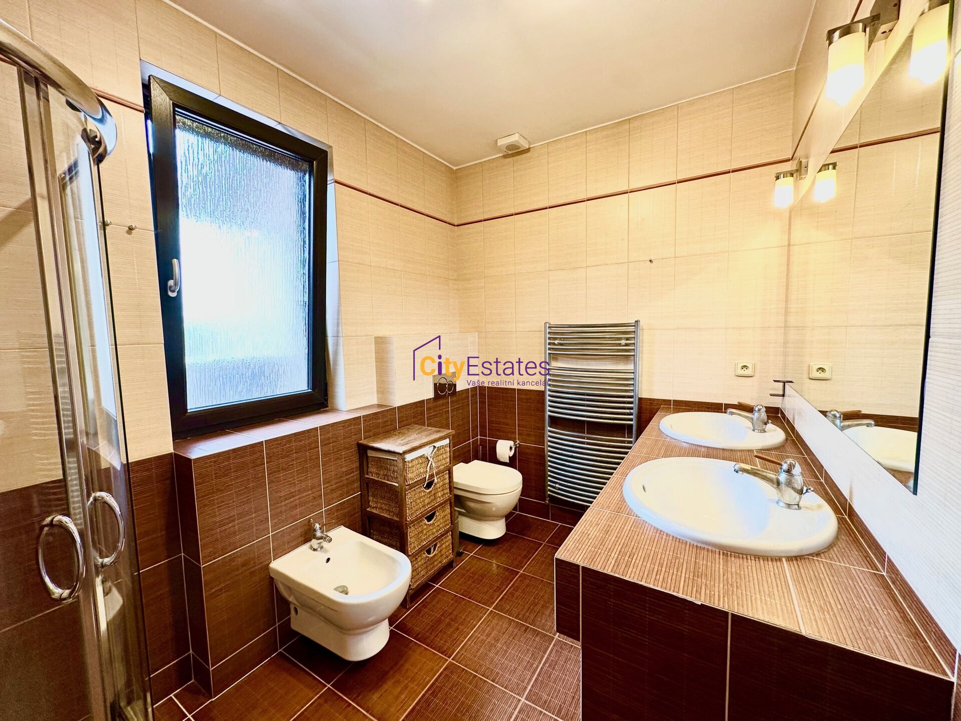 Ložnice jsou umístěné ve dvou částech domu tak, aby bylo zachováno naprosté soukromí. U hlavní velké ložnice orientované na sever je privátní koupelna s umyvadly, sprchovým koutem, WC a bidetem.
