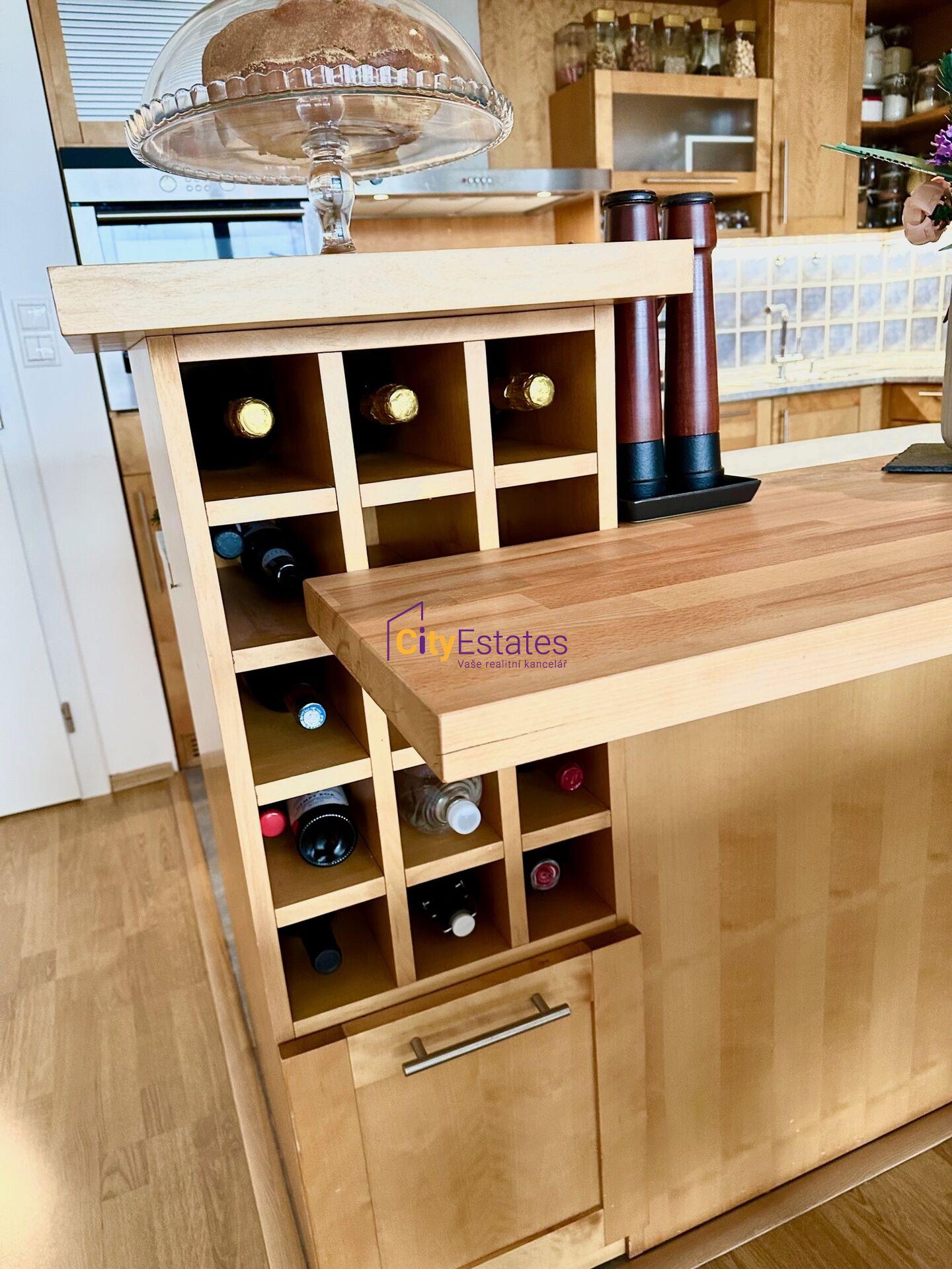 Kuchyňská linka s ostrůvkem je vybavena moderními spotřebiči. Na chodbách a v pokojích jsou vestavěné skříně vyrobené na zakázku. Terasa má navíc nainstalovanou stínící pergolu. Okna jsou plastová dvojitá izolační, na podlaze dlažba a vinyl, bezpečnostní vstupní dveře.
